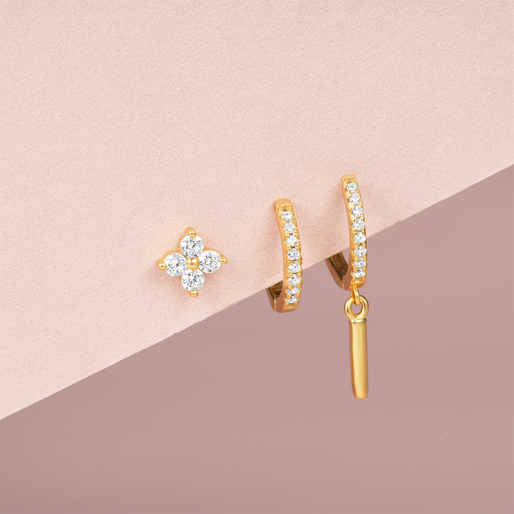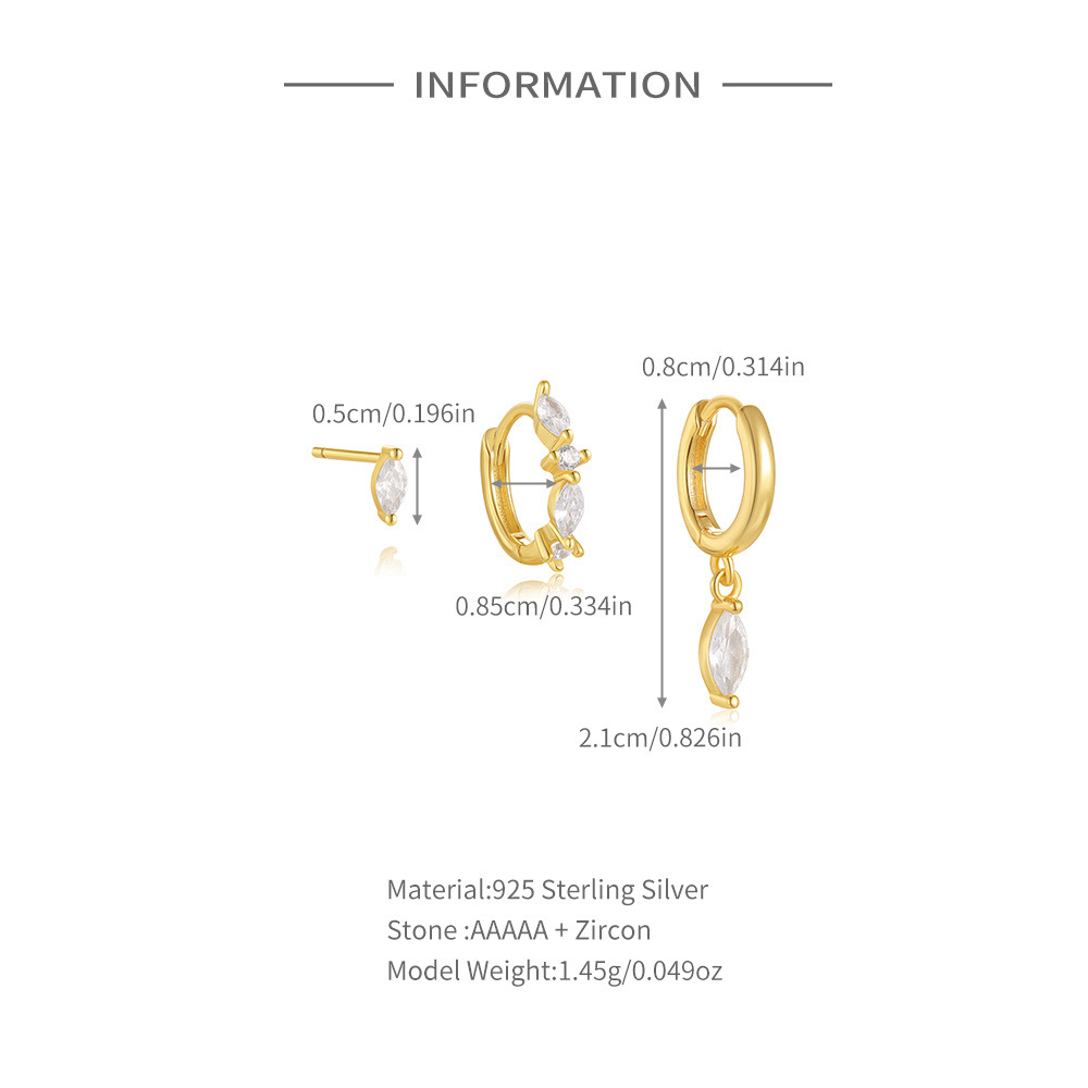 925 Sterling Silver Eight Awn Star Diamond-embedded Classic 3-piece Set