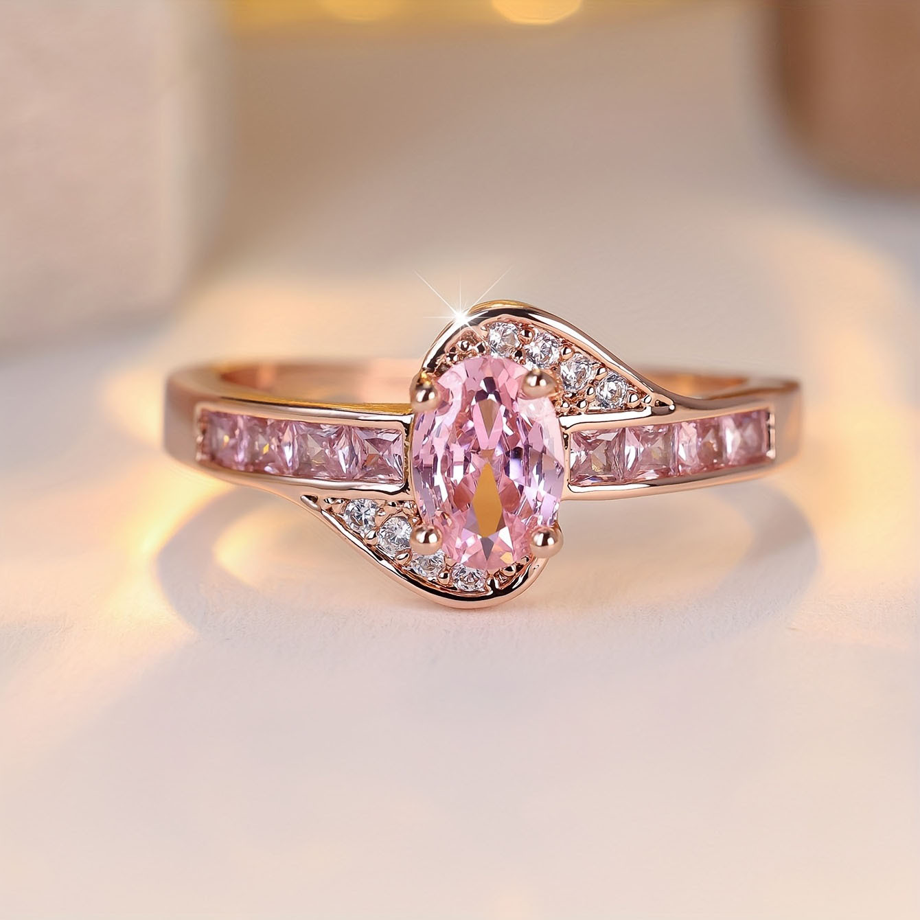 Cross-border New Arrival European And American Ladies Fashion High-end Ring Fashion Pink Crystal Diamond-studded Ring Ornament