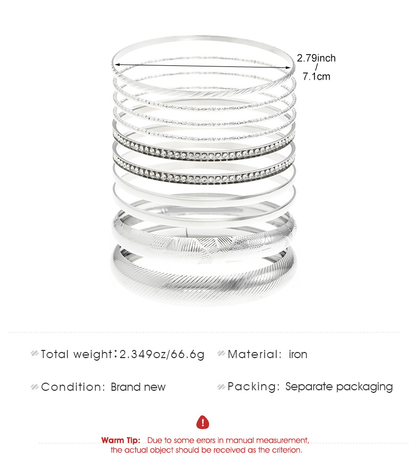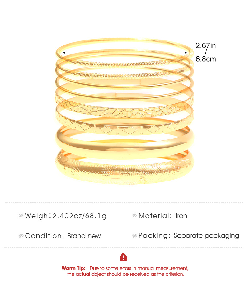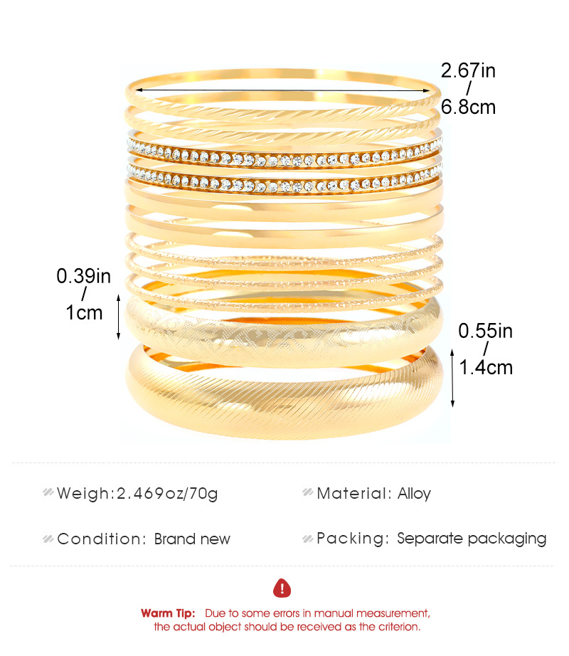 Ethnic Style Alloy Retro Wide Gold Glossy Wristband Bracelet 10 PCs Set