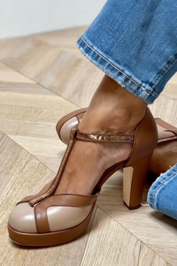 Fashion High Heel Thick Bottom T-shaped Buckle With Pumps Women