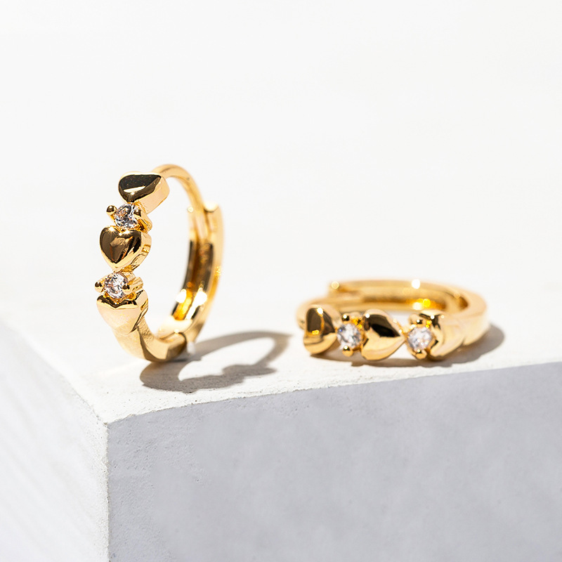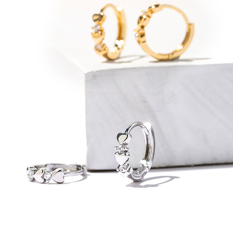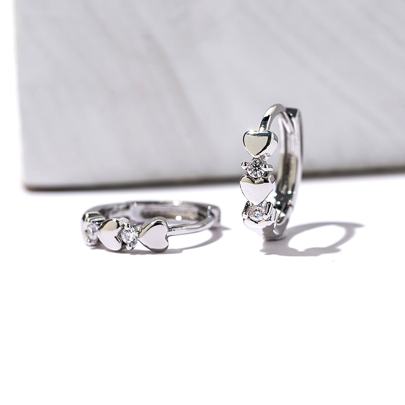 Love Heart Zircon Earrings Cold Wind Round Small Ear Ring
