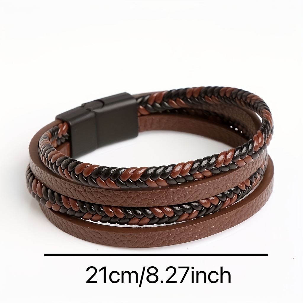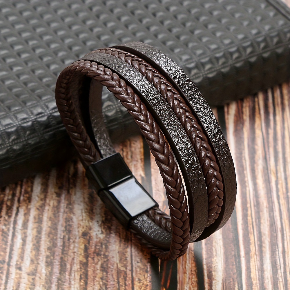 Men's Simple Pu Woven Alloy Magnetic Buckle Bracelet