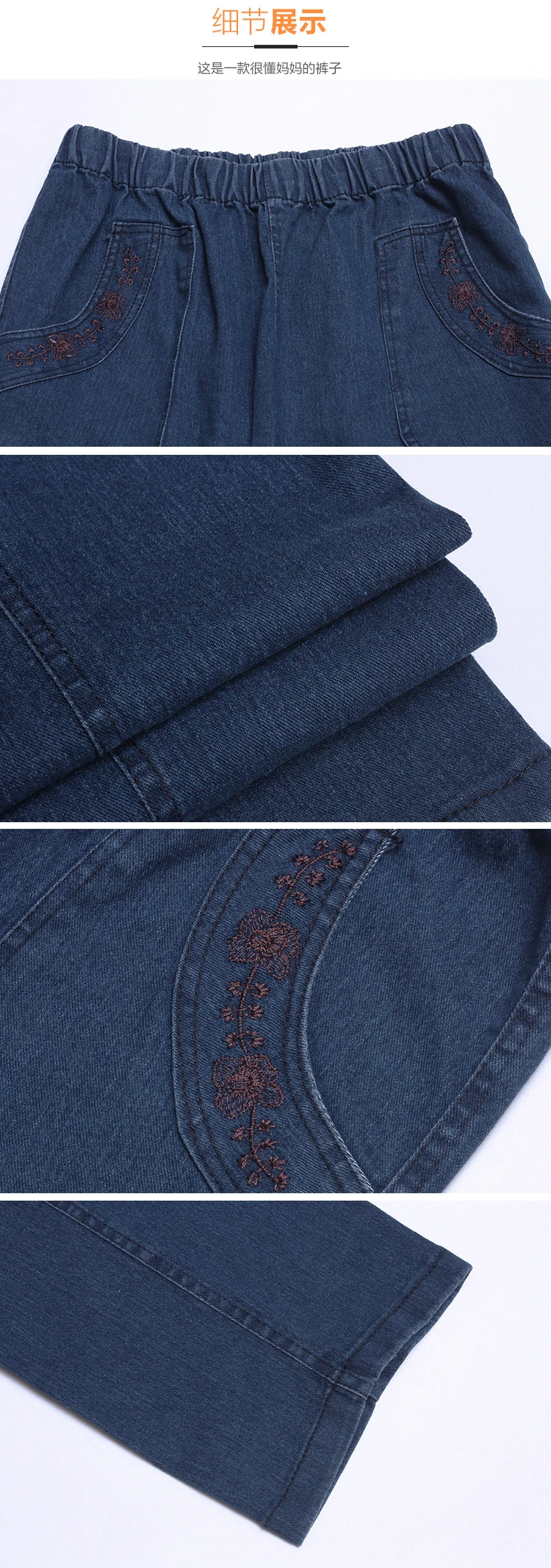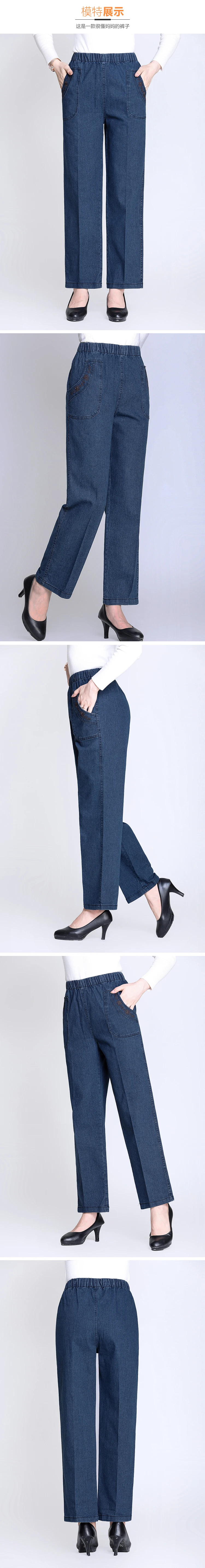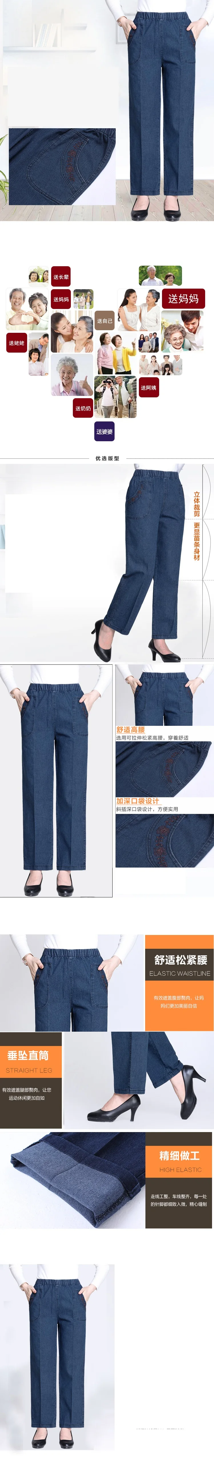 Middle Aged Mother Embroidered Jeans 5XL Spring Autumn Female Loose Straight Leg Pants Elastic Waist Women's Casual Denim Pants