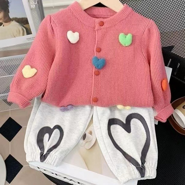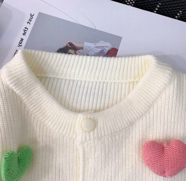 Spring Girls' Three-dimensional Love Puff Sleeve Sweater Coat