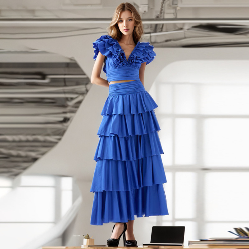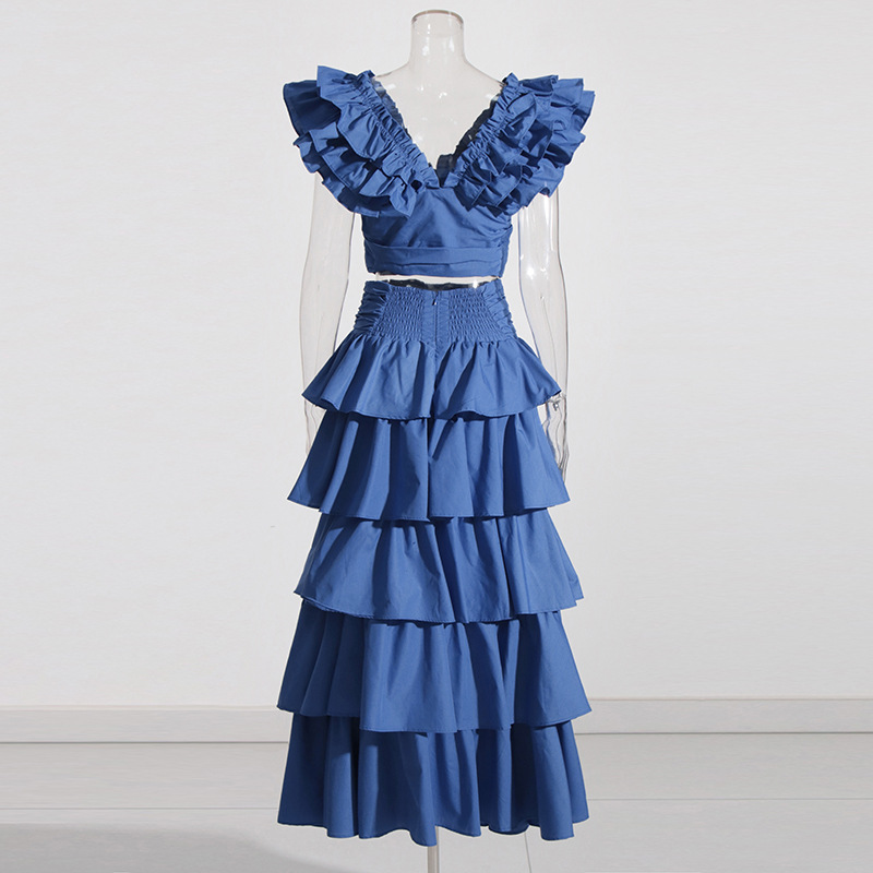 Vacation Style Fashion Casual Set Short Top Ruffled High Waist Skirt