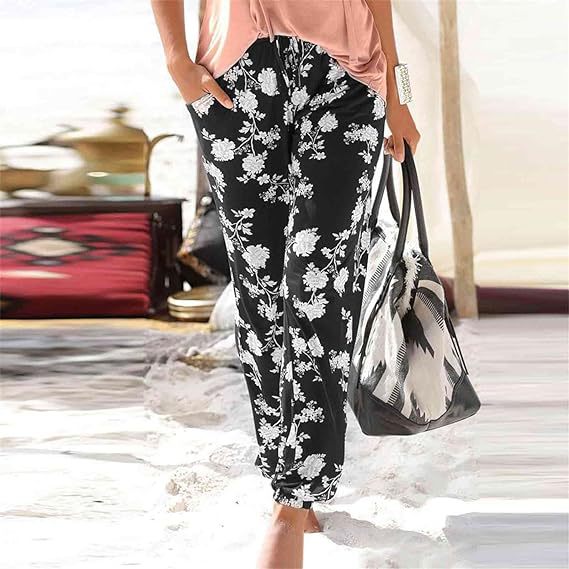 Women's Elastic Waist Printed Pocket Lace-up Leggings